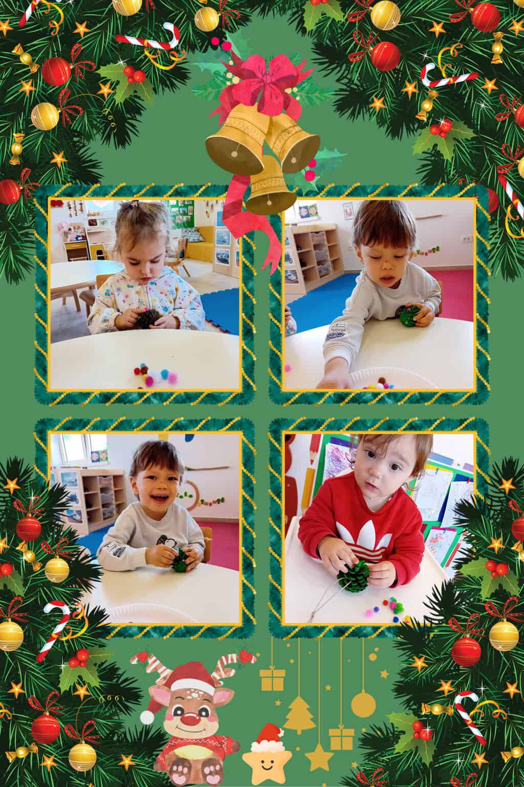 Uz pomoÄ vrijednih ruÄica, maÅ”te, malo božiÄne Äarolije, te prirodnih materijala i Å”arenih loptica (pompona) izraÄivali smo božiÄne ukrase kojima Äemo uljepÅ”ati naÅ” borĀ i ispuniti vrtiÄ radoÅ”Äu!!