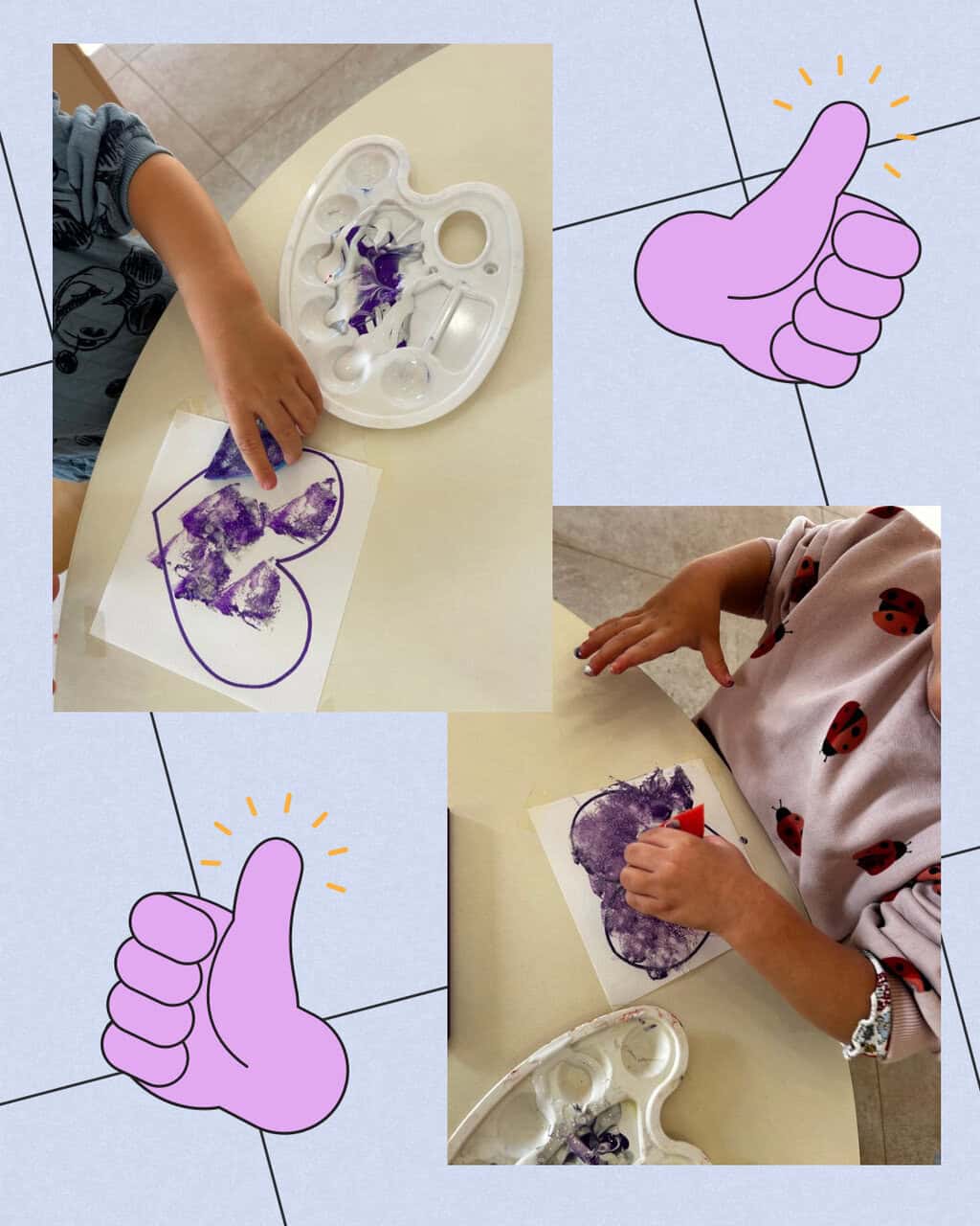 Zatim smo bojali ljubiÄasta srca i ostavljali otiske naÅ”ih ljubiÄastih ruÄica, boje koja simbolizira hrabrost i snagu prijevremeno roÄenih maliÅ”ana i njihovih obitelji.