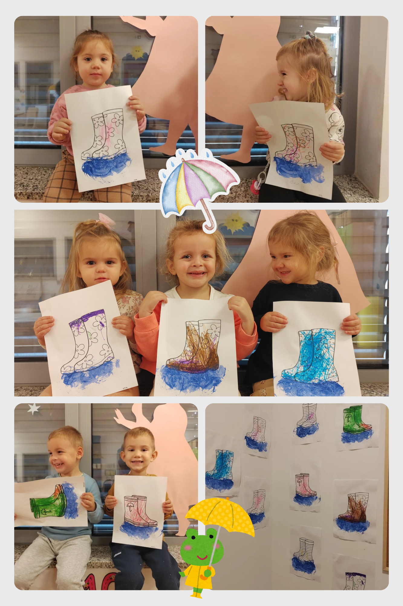 Kišni jesenski dani potaknuli su nas na istraživanje kiše. Djeca su raznim likovnim tehnikama izrađivala oblake, kišu, kišobrane i gumene čizmice ☂️🌧️. Likovno stvaralaštvo naša je svakodnevnica, kroz koju potičemo maštu, kreativnost i istraživanje boja, materijala i tekstura.