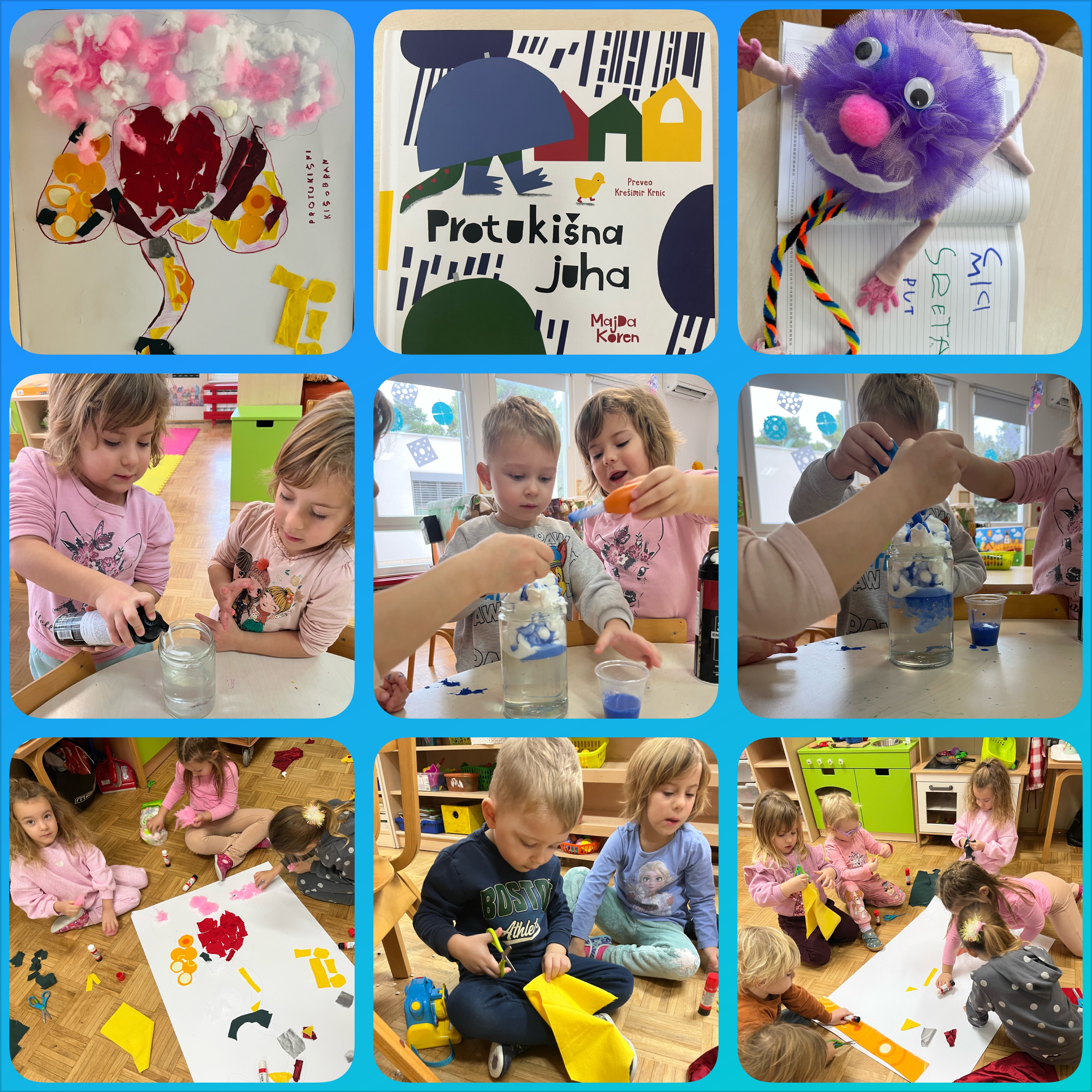 U sklopu projekta Naša mala knjižnica, skupina Bubamare ovoga je mjeseca obrađivala slikovnicu „Protukišna juha“ autorice Majde Koren.