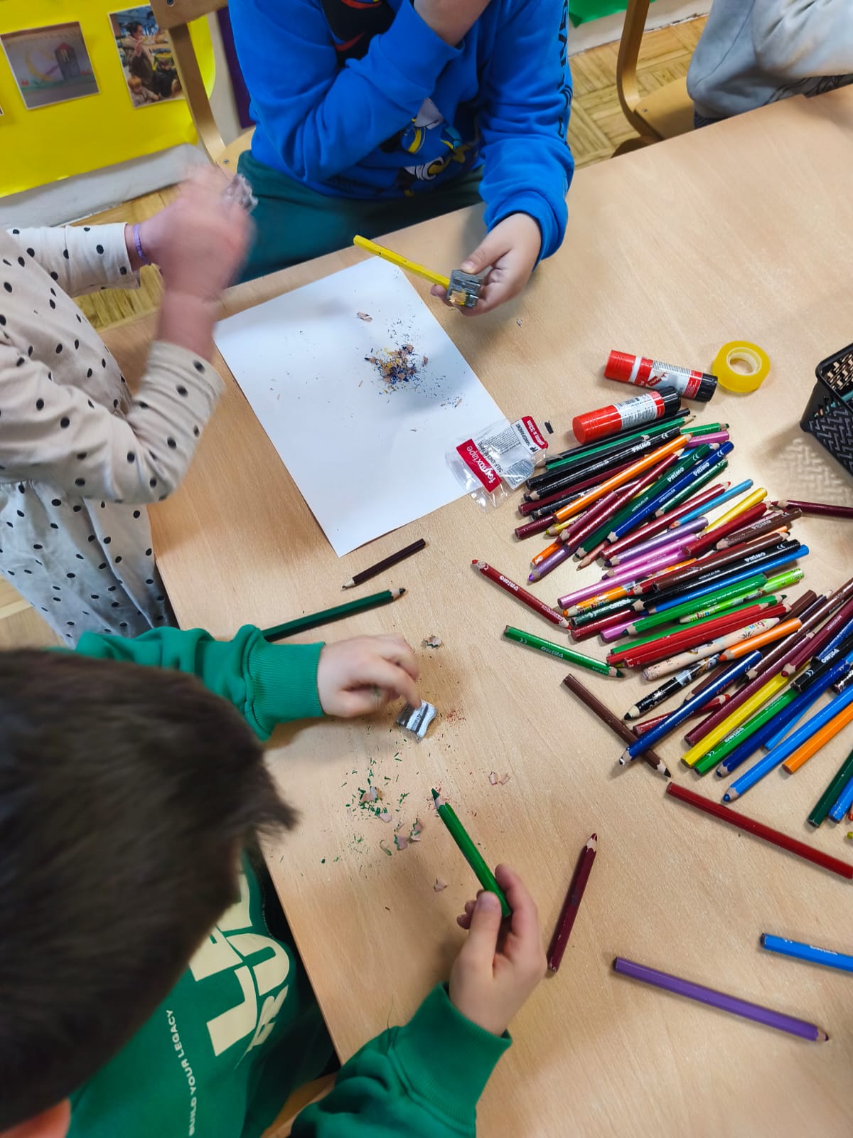 Djeca su sudjelovala u aktivnostima razvoja fine motorike kroz rezanje škaricama, trganje papira, šiljenje drvenih boja i olovki te oblikovanje plastelina uz razne modlice i slično. Kroz ove aktivnosti poticali smo preciznost pokreta, koordinaciju oka i prstiju te samostalnost u radu.