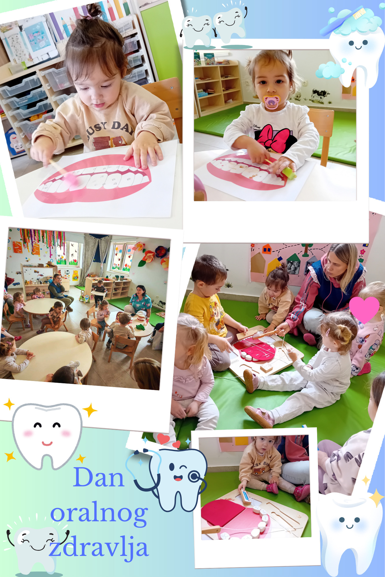 U našoj skupini obilježili smo “Dan oralnog zdravlja” kroz razgovor, slikovnice, te didaktičke i likovne aktivnosti vezane uz pravilnu higijenu zubi u suradnji s zdravstvenom voditeljicom našeg vrtića Anitom Bahun, te stomatologinjom Smiljanom Čemeljić.
