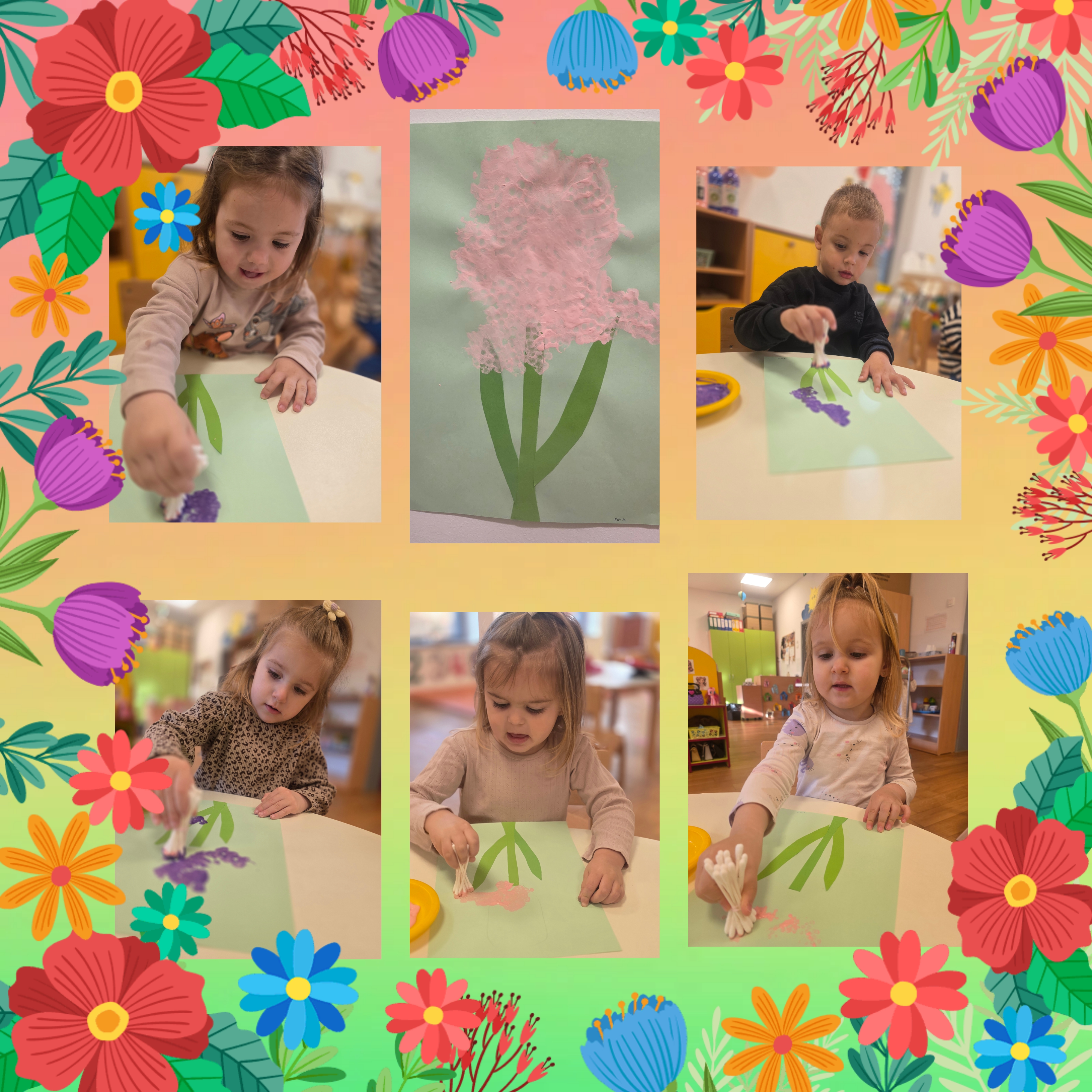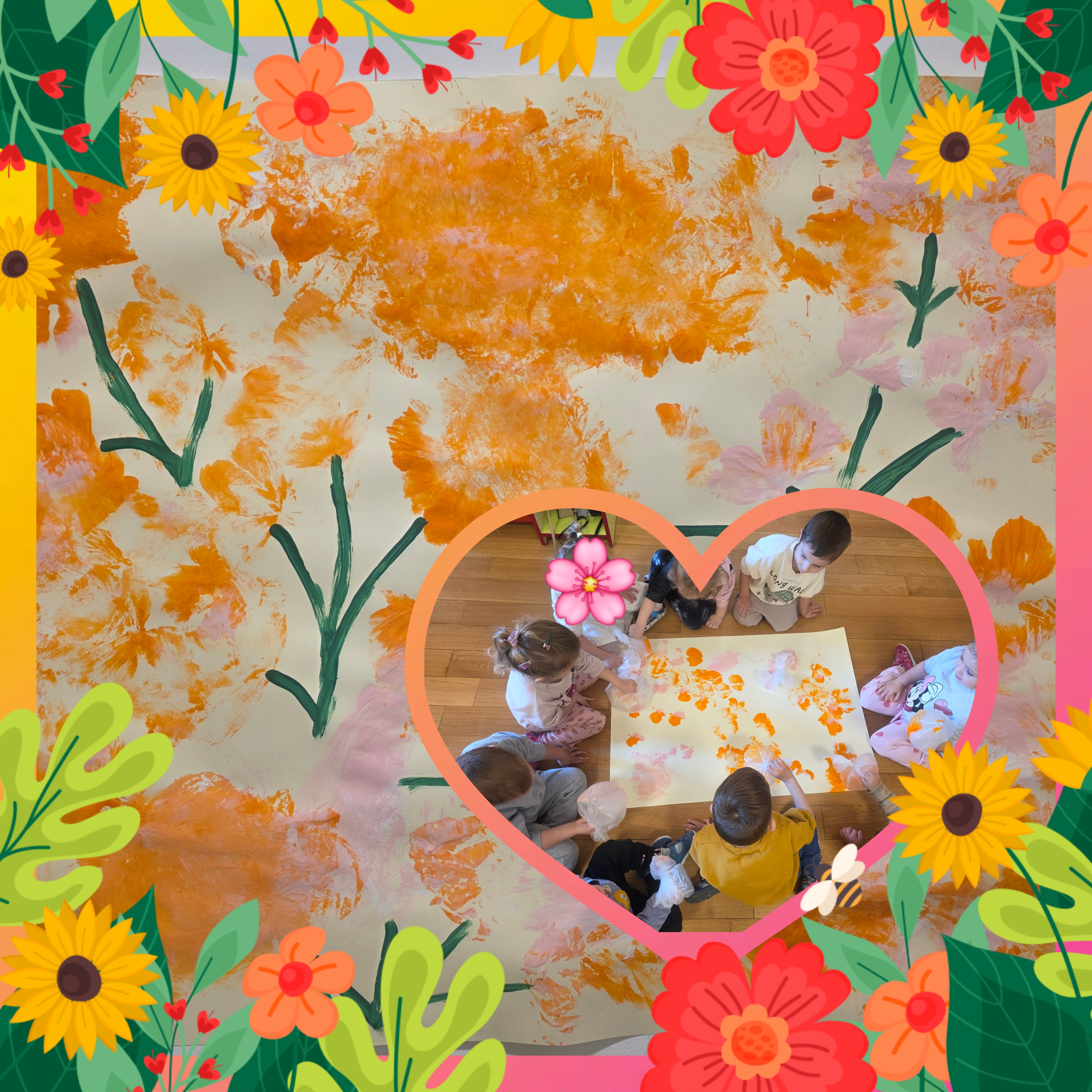 🎨 Koristeći tempere, škarice, ljepilo, papir u boji i šljokice, stvarali smo šarene radove pune mašte i veselja. Posebno smo uživali u izradi zajedničke slike cvijeća 🌸, leptira 🦋, pčelica 🐝, pri čemu djeca razvijaju finu motoriku, osjećaj za boje i vlastiti likovni izričaj.