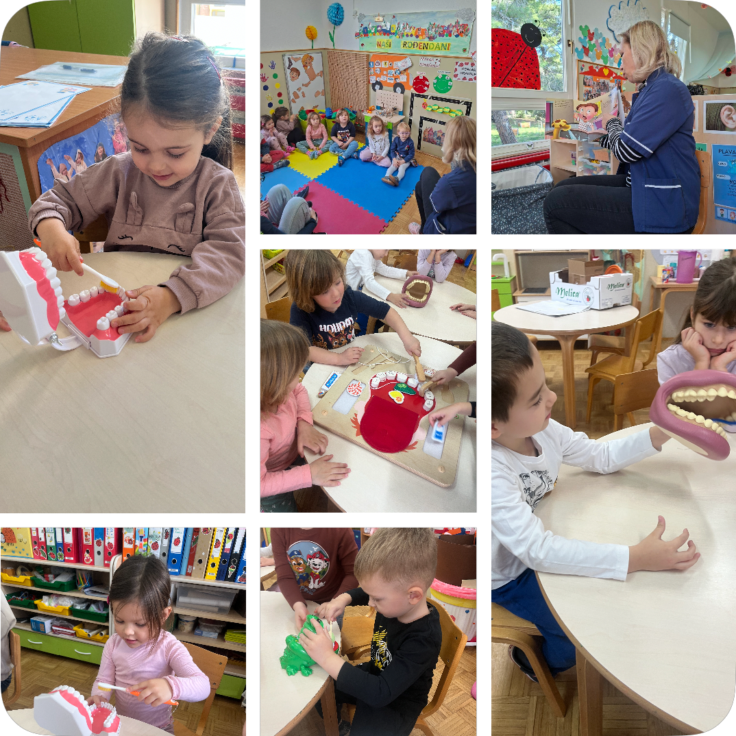 Kroz aktivnosti nas je vodila zdravstvena voditeljica Anita Bahun, koja je djeci na njima razumljiv i zanimljiv način približila važnost oralne higijene. Druženje smo započeli čitanjem prigodne slikovnice, nakon čega su djeca razgovarala o tome kako pravilno brinuti o svojim zubima te naučila osnovna pravila održavanja oralnog zdravlja.